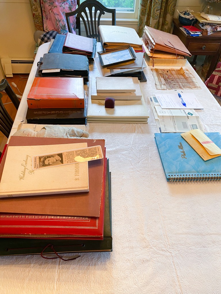 Hi everyone! I wanted to share a personal project my sister and I have (finally) made a start on… The Kilmer-Tuttle Family Archives (or Trove as we really refer to it). If you are following Modern Memorykeeper on Instagram or Facebook, you have no doubt noticed a tip a day being shared as September is “Save Your Photos Month”. Today, I wanted to elaborate on the tip for Day #11 which was “Inventory”. This past July, my sister brought over the boxes that she had of our mother’s families items and we combined them with the items I had and stacked them all up on the dining room table.