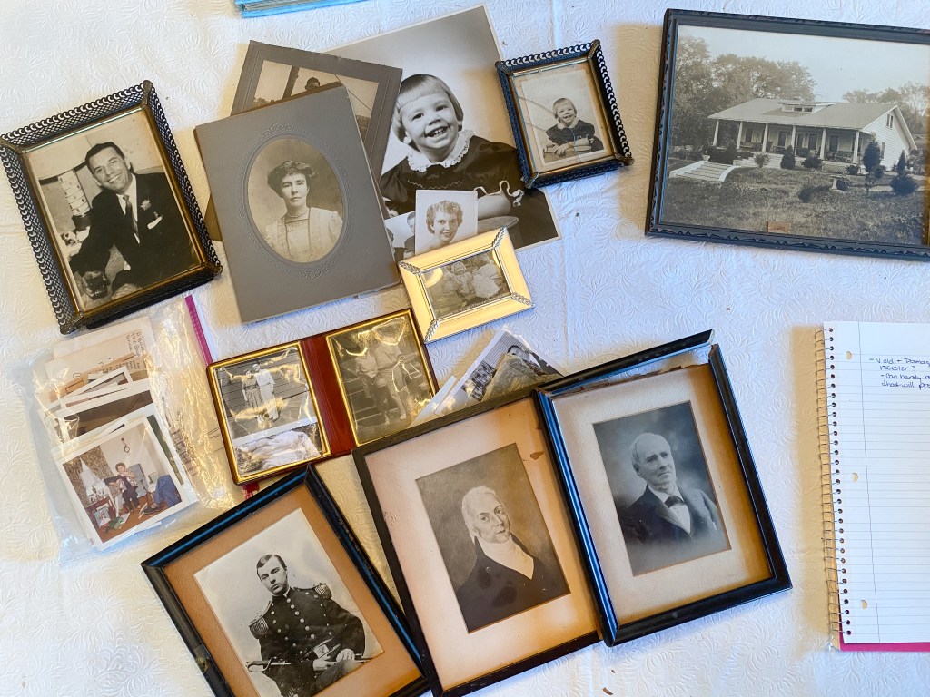 - #4 Document, I hand wrote notes in a notebook including who the item belonged to (if I knew), description, condition, and notes on what was in the album/envelope and initial ideas on what we might want to do with the item. I also included where the item will be stored in my home, to make retrieval easier. I will know exactly where a particular item is. I also photographed each item, albums had their covers photographed for identification and one or two photographs of the insides as a reminder of what the album contained.