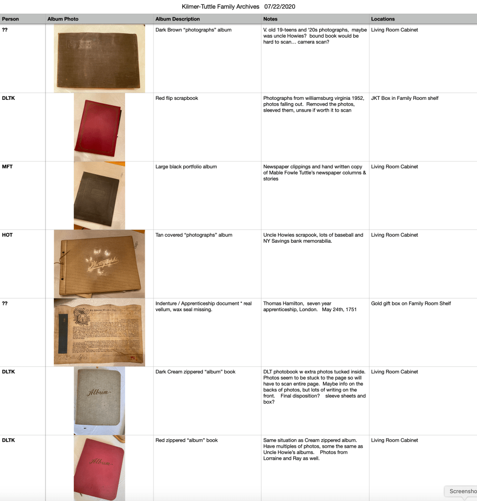 We wanted to keep this process quick and simple and just get an idea of what we had to work with. Now we feel like we can take our time digitizing items and discussing how we want to preserve and share things. This approach is simple and flexible, and I highly recommend working through an inventory and taking some time to look at what you have before you dig in and restore or digitize your items.